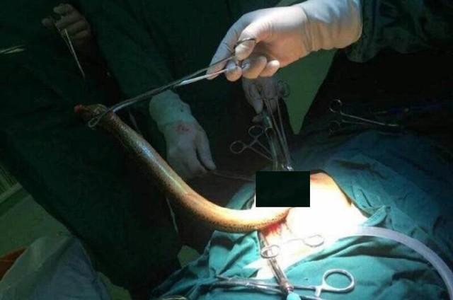 Zhang, apelidada de Qi Qi, teve que ser levada às pressas a cirurgia para a retirada da enguia. Uma imagem da operação viralizou nas redes sociais da internet chinesa.